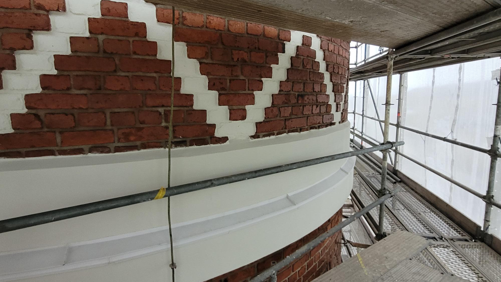 Vaurioituneiden tiilien ja tiilisaumausten uusiminenIkkunoiden kunnostusRappausten uusiminen ja maalausKermikaton uusiminen